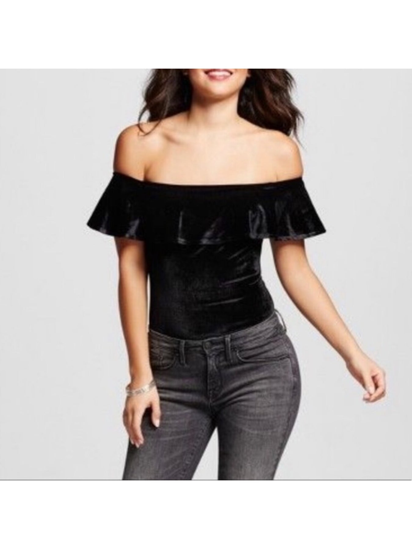 Womens Ruffled Short Sleeve Off Shoulder Top