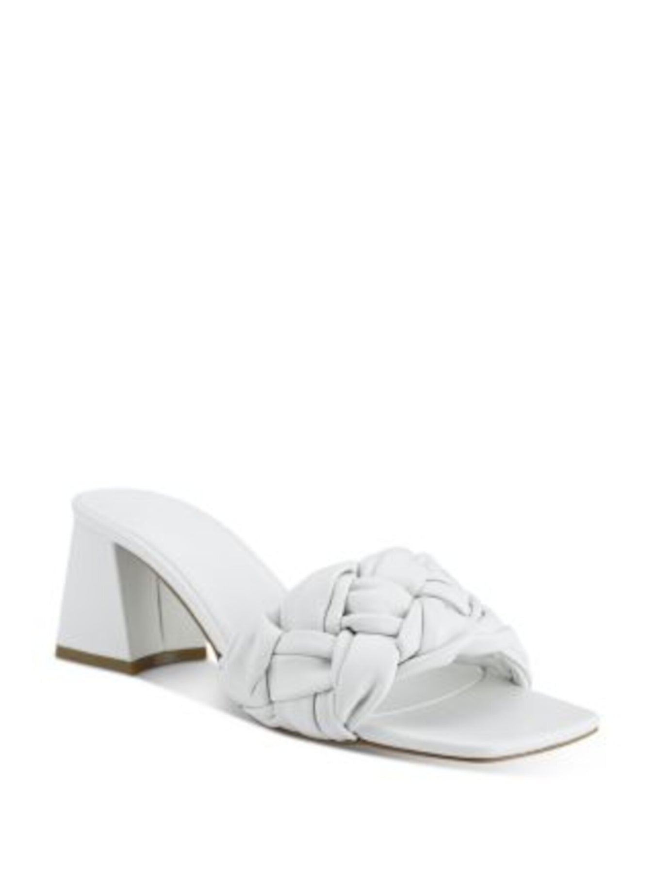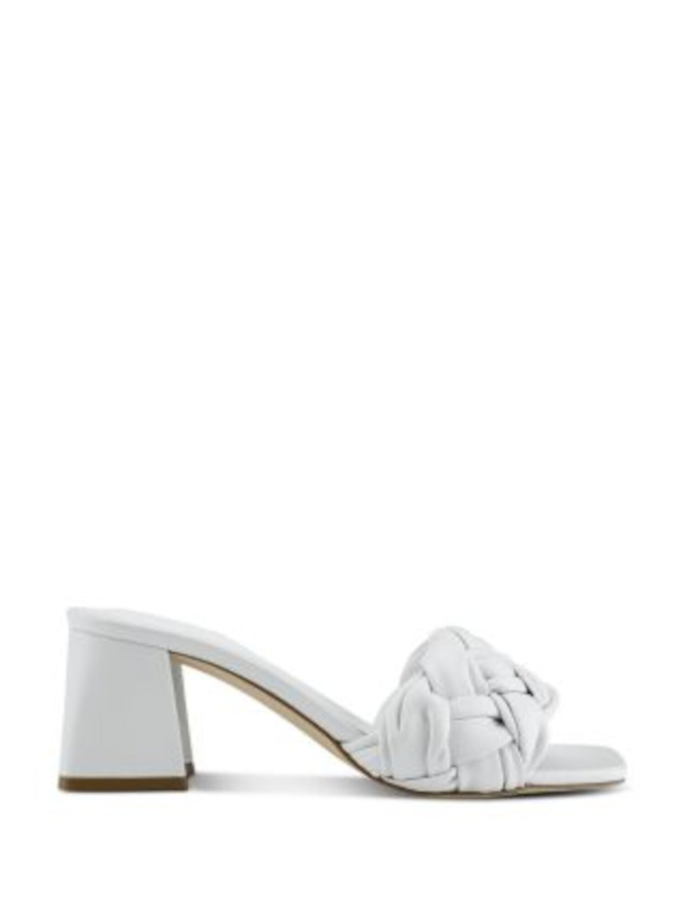 Womens Cerita White Woven Padded Cerita Square Toe Block Heel Slip On Leather Heeled M