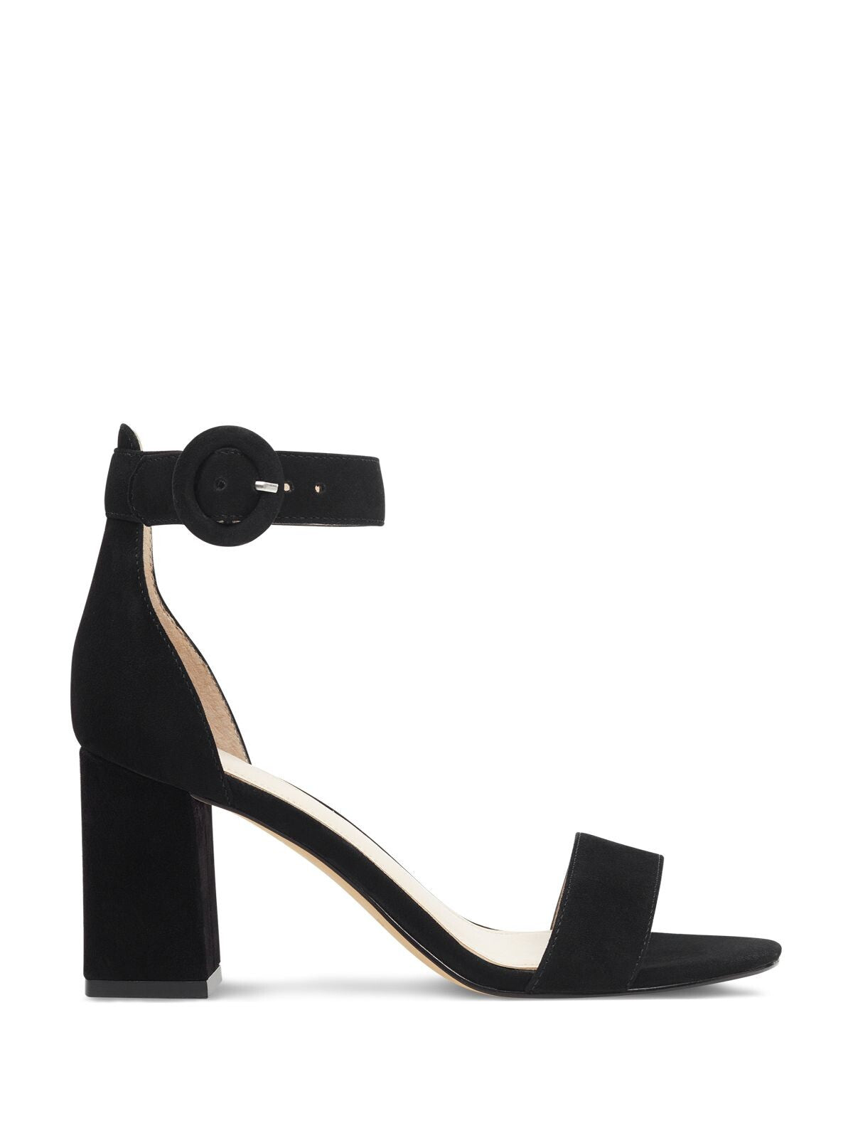 MARC FISHER Womens Black Adjustable Ankle Strap Padded Cushioned Karlee Round Toe Block Heel Buckle Leather Dress Sandals Shoes 9 M