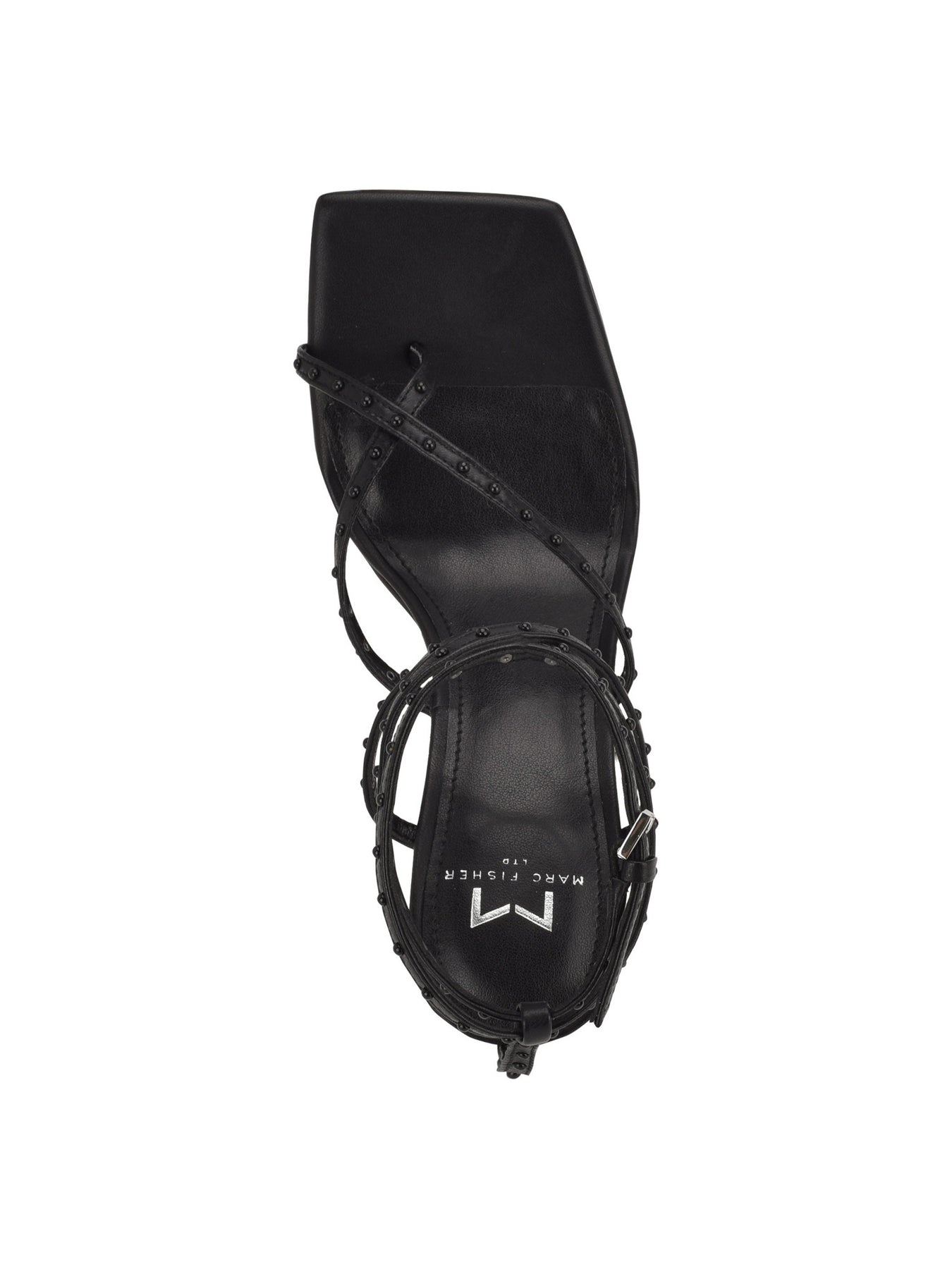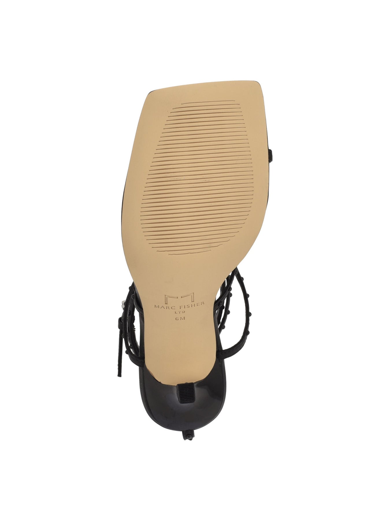 MARC FISHER Womens Black Padded Studded Ankle Strap Dallin Square Toe Stiletto Buckle Leather Heeled Sandal 6 M