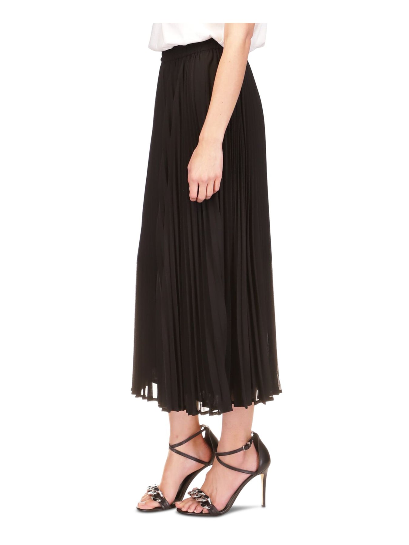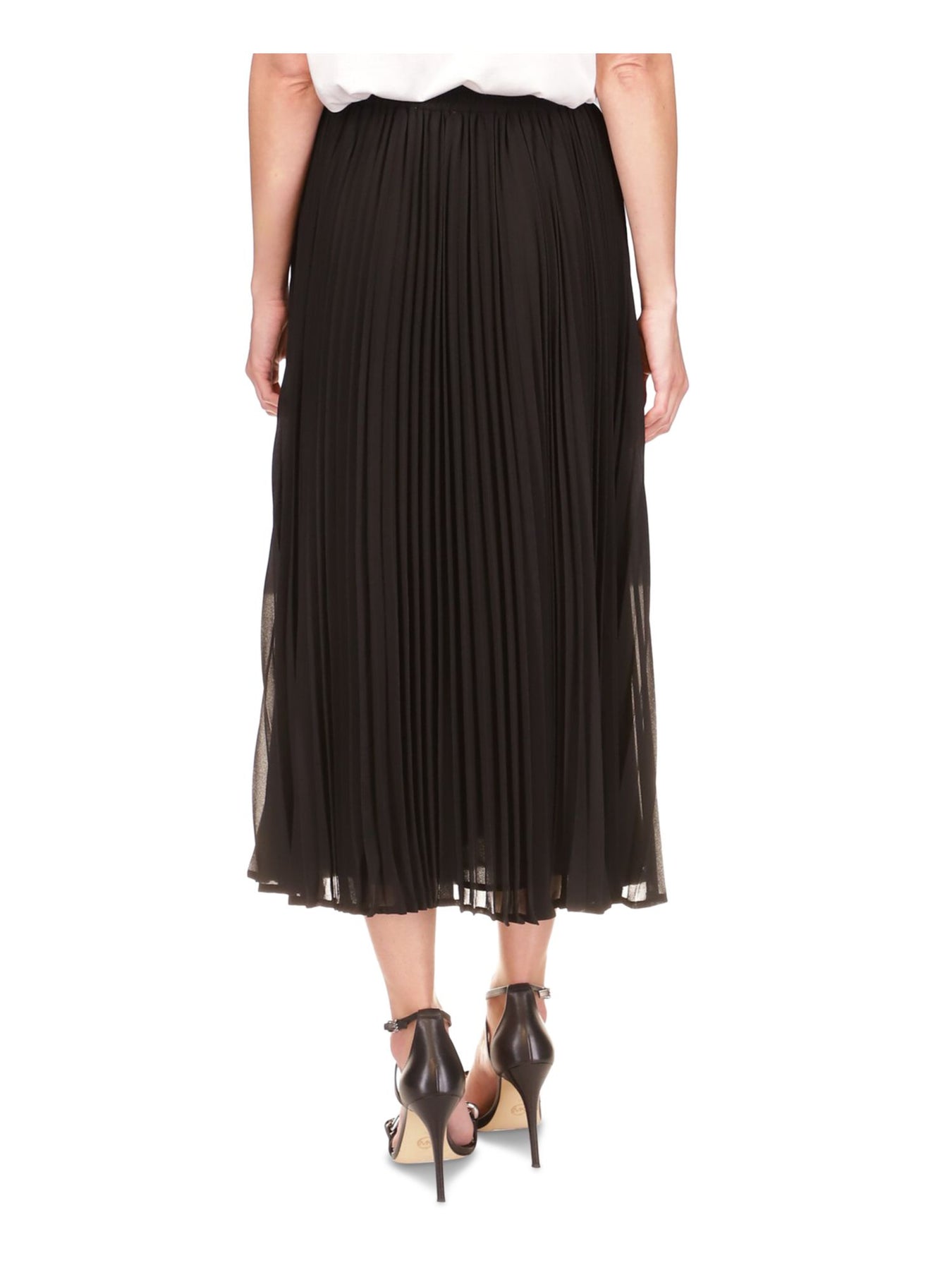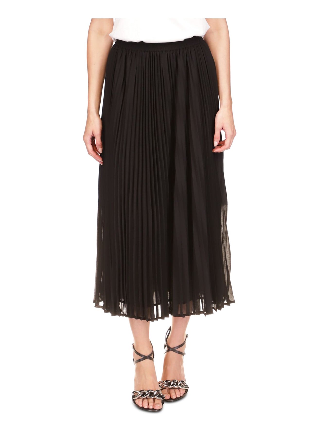 MICHAEL MICHAEL KORS Womens Black Lined Elastic Waist Pull-on Midi Wear To Work Pleated Skirt L