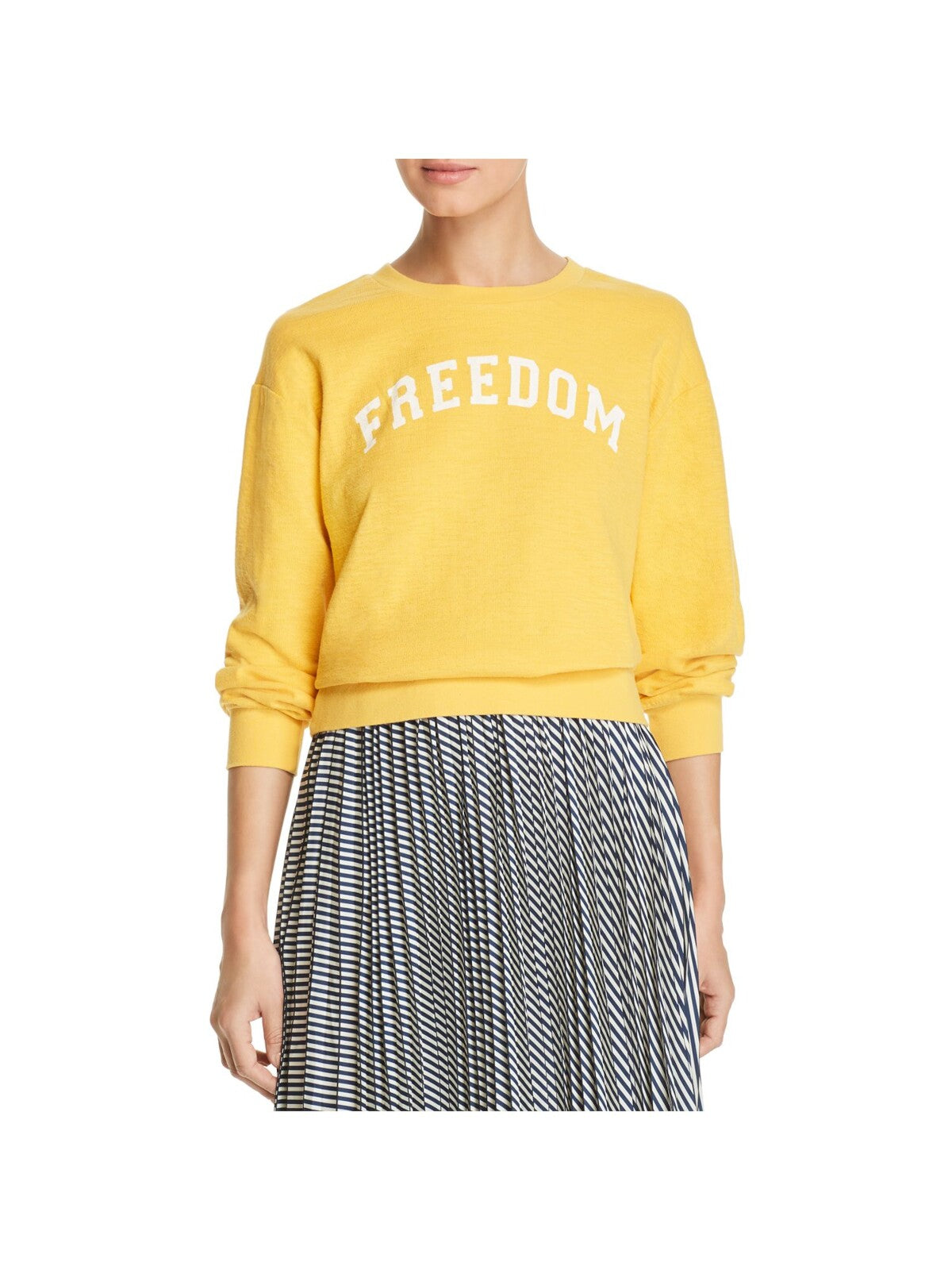 Womens Yellow Textured Rib-knit Trim Graphic Sweatshirt