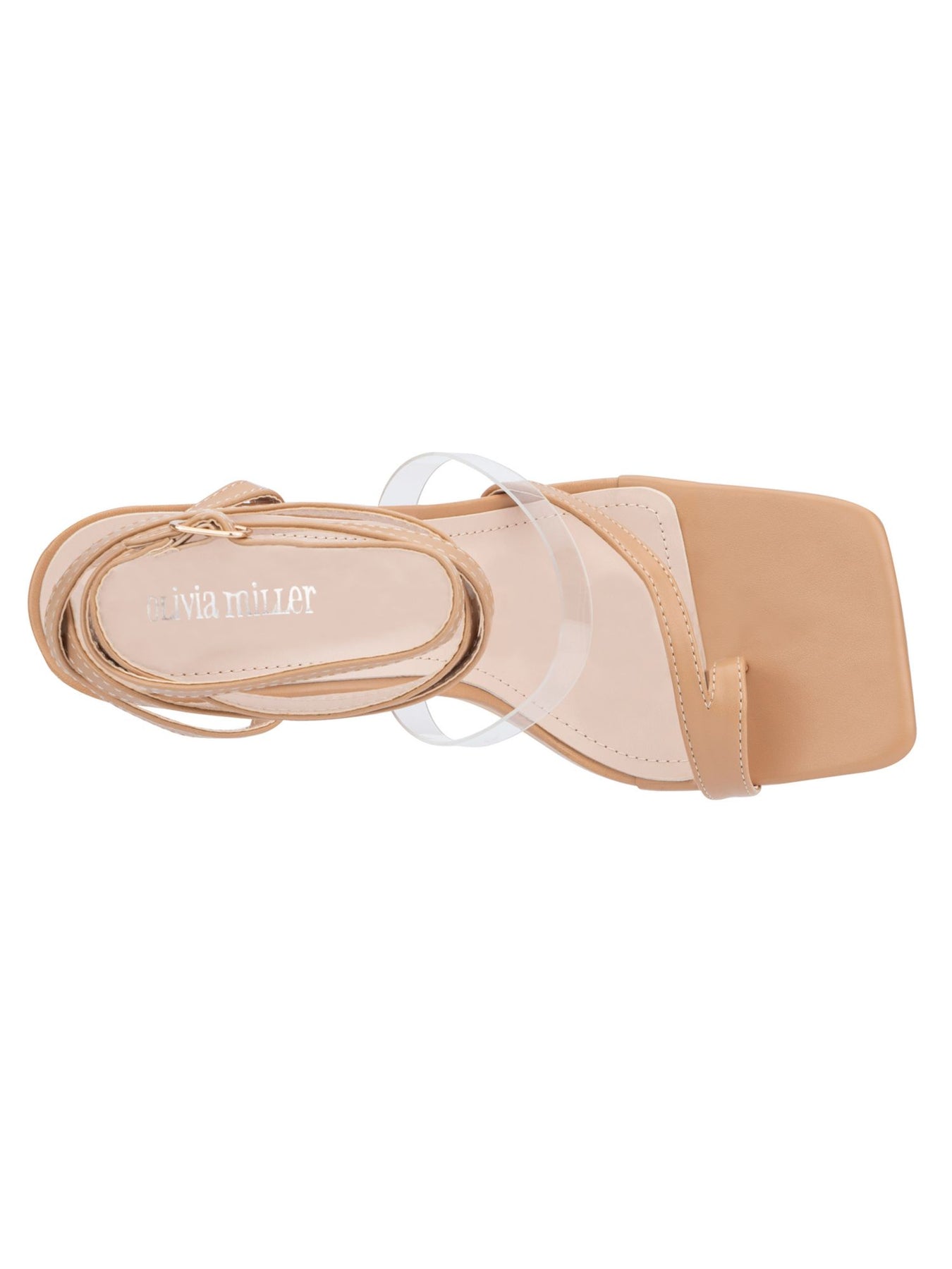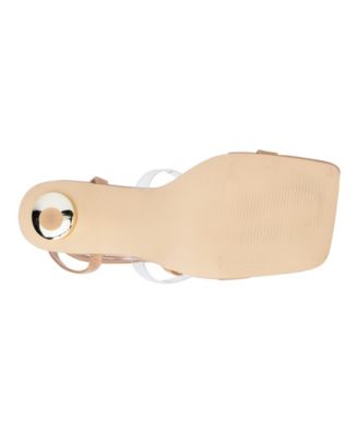 Womens Beige Mixed Media Wrap Ankle Strap Toe -Loop Padded Sloane Square Toe Sculpted Heel Buckle Heeled