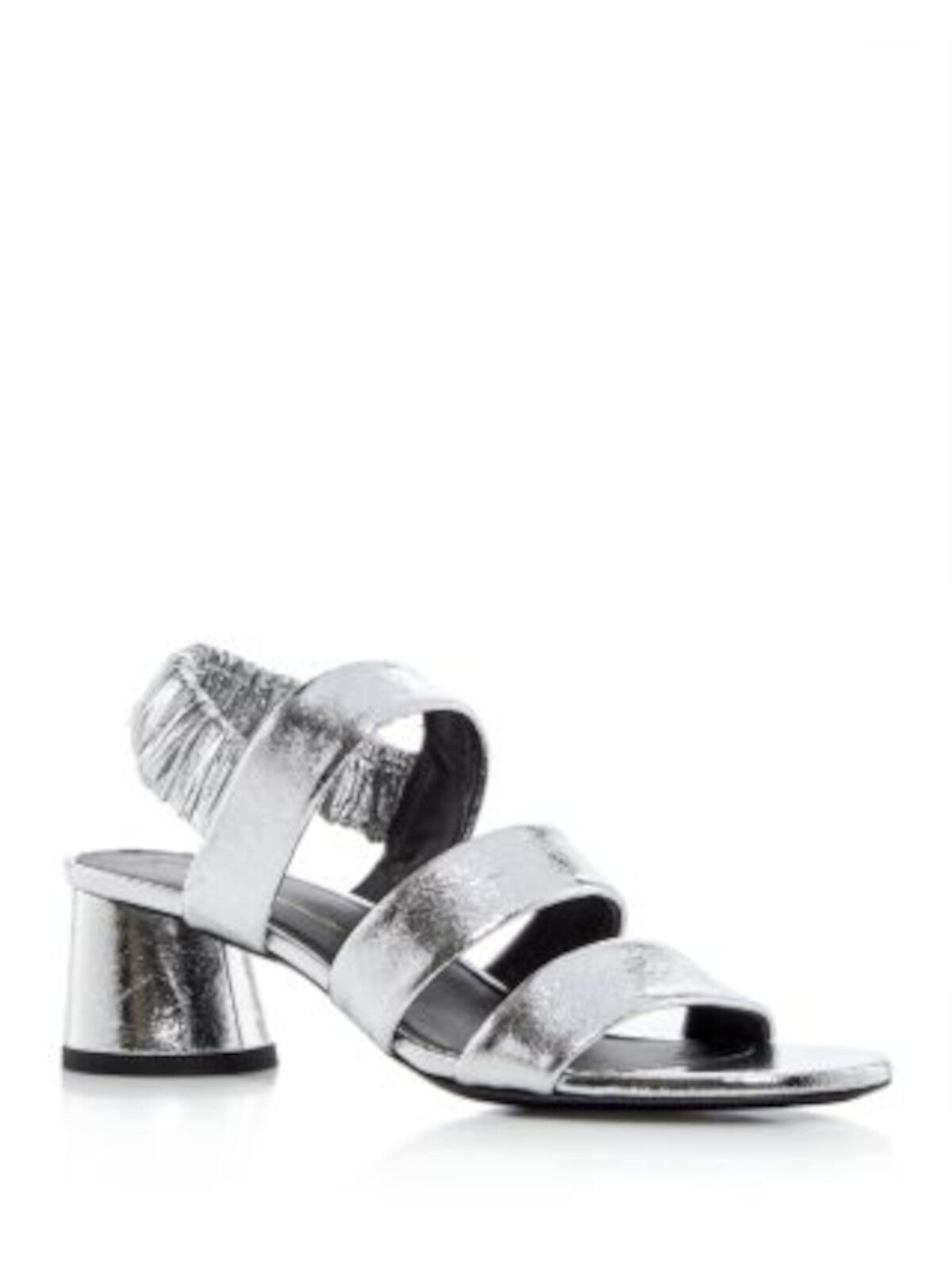Womens Silver Metallic Crinkle Padded Goring Strappy Glove Round Toe Sculpted Heel Slip On Leather Dress Slingback Sandal