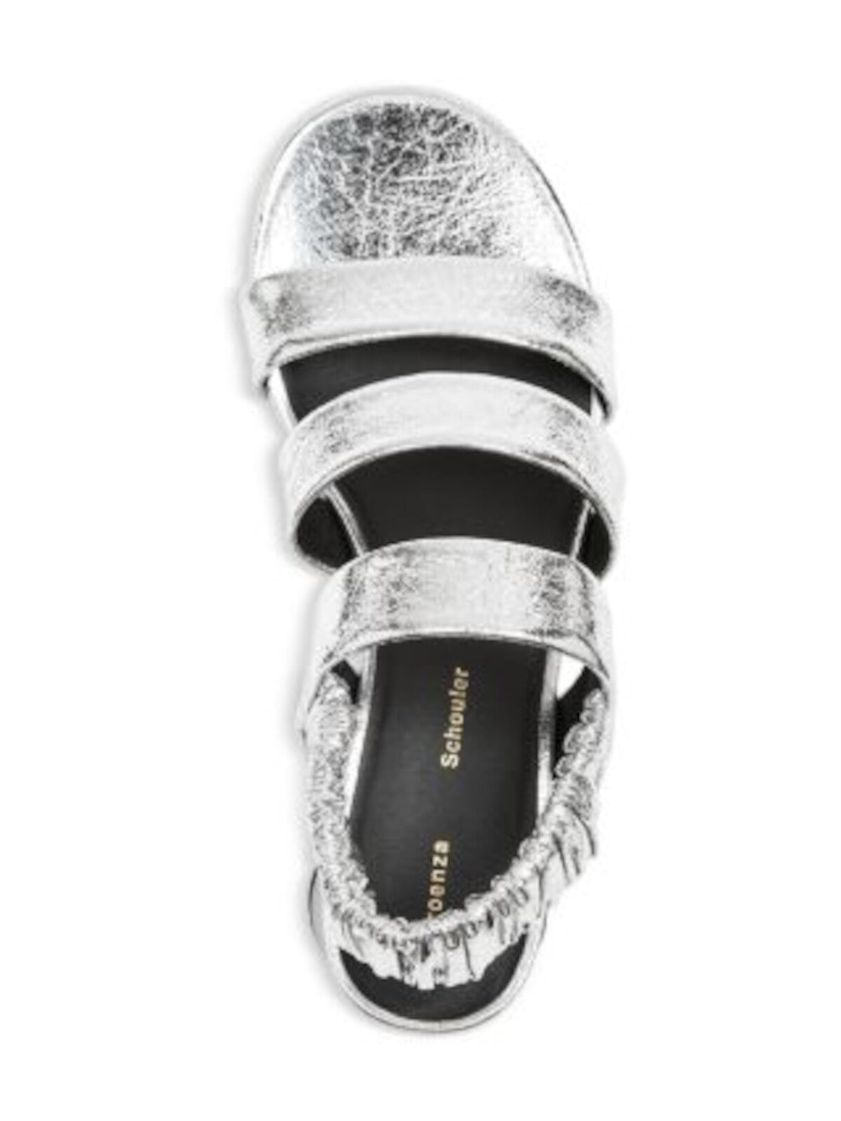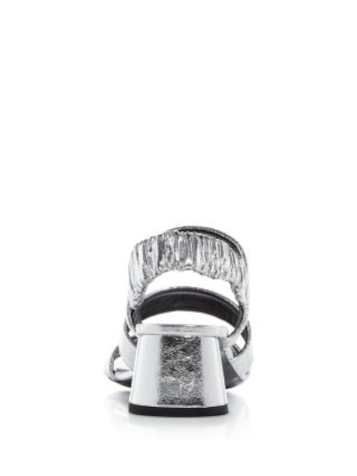 Womens Silver Metallic Crinkle Padded Goring Strappy Glove Round Toe Sculpted Heel Slip On Leather Dress Slingback Sandal