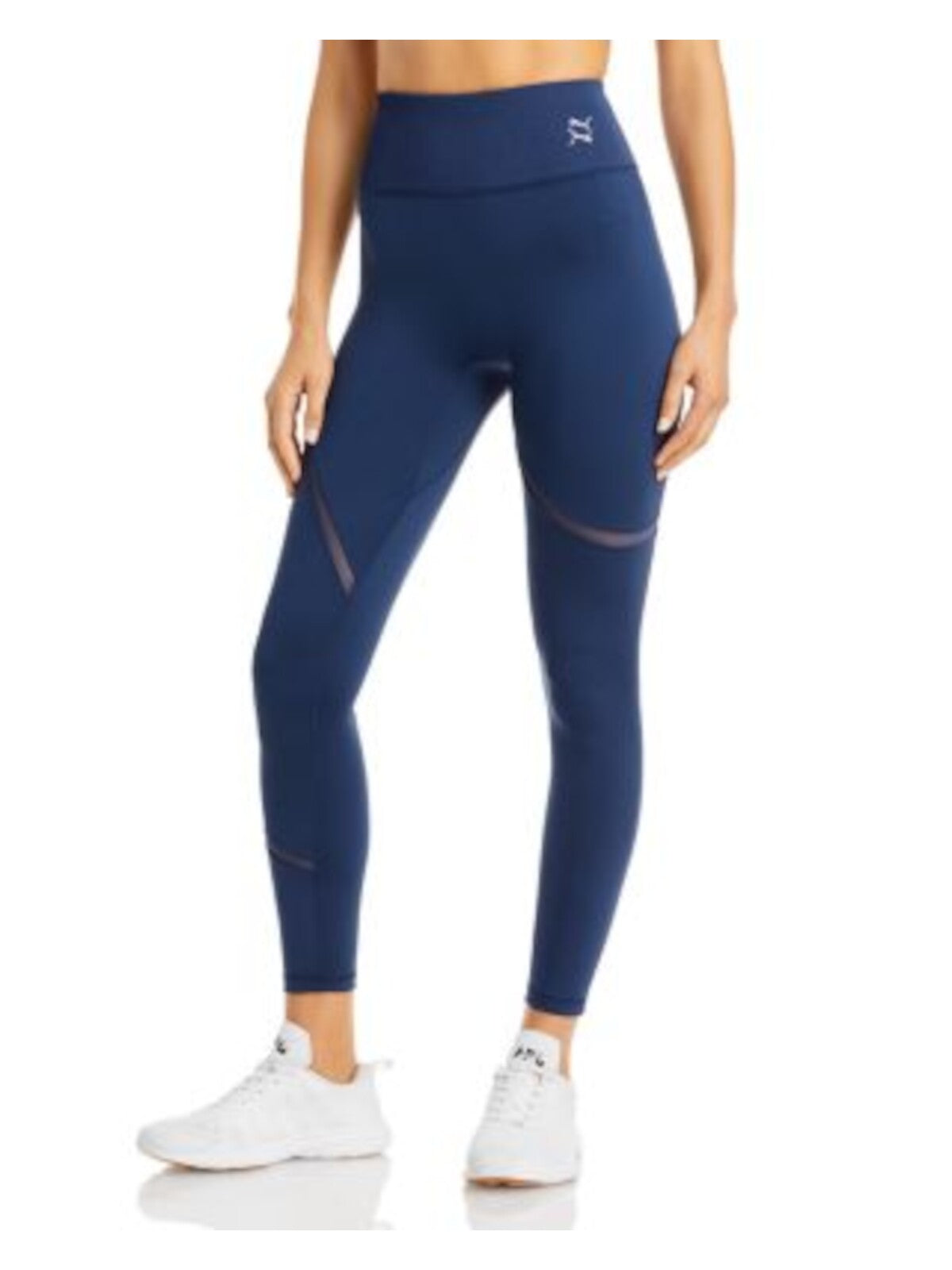 PUMA Womens Skinny Leggings Navy Stretch Pocketed Active Wear Solid Mesh Inset Ribbed Waistband S
