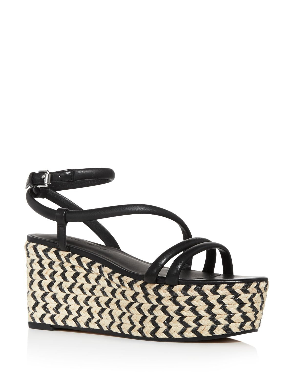 Womens Black 2" Platform Jute Wrapped Strappy Adjustable Asymmetrical Ankle Strap Josefia Round Toe Wedge Buckle Leather Espadrille Shoes M