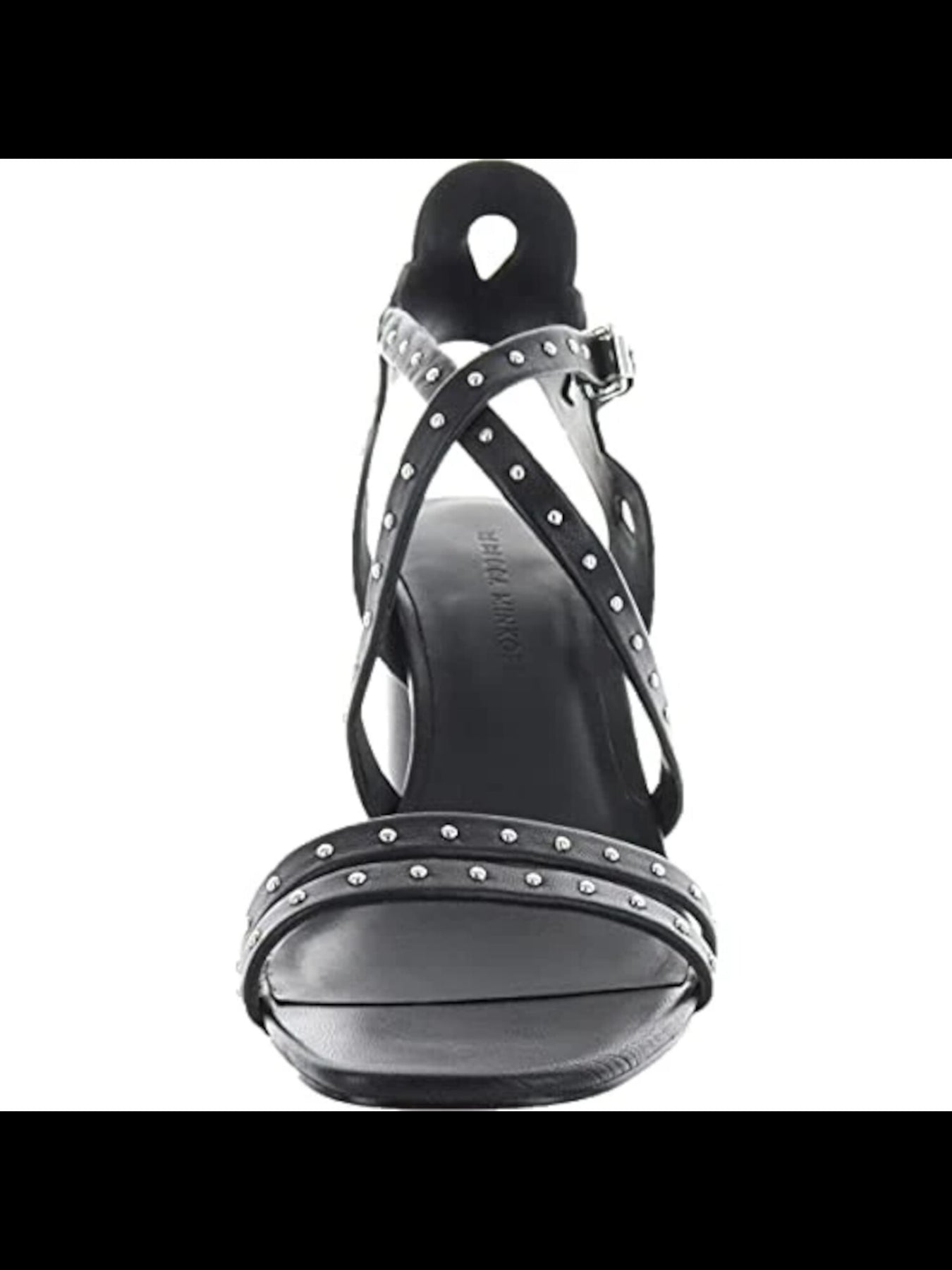 Womens Black Cutout Strappy Adjustable Strap Studded Scalloped Adeleine Square Toe Block Heel Buckle Leather Dress Sandals Shoes M