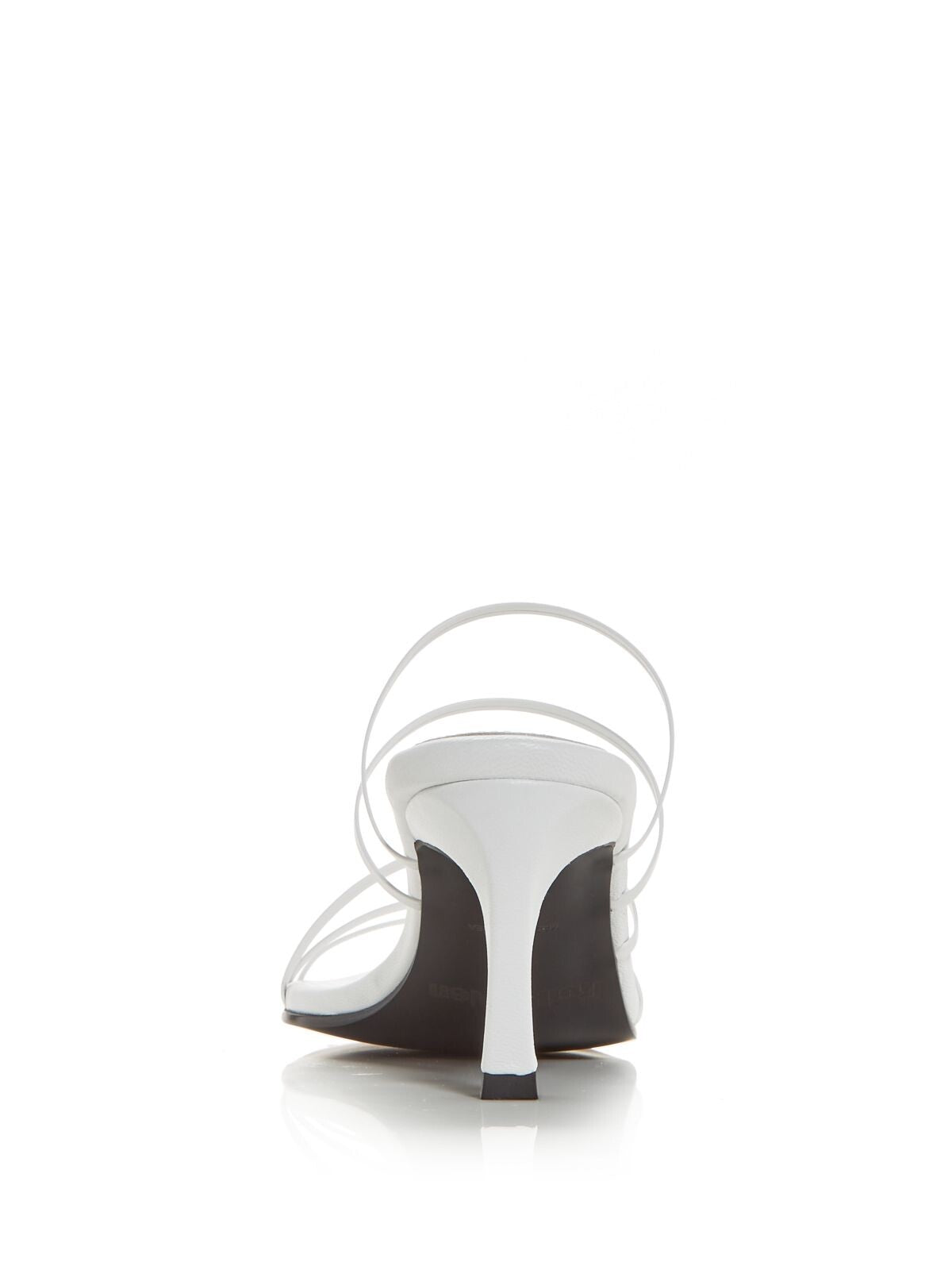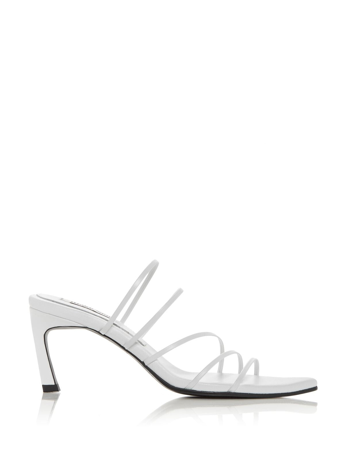 Womens White Strappy Padded Pointed Toe Sculpted Heel Slip On Leather Dress Slide Sandals Shoes