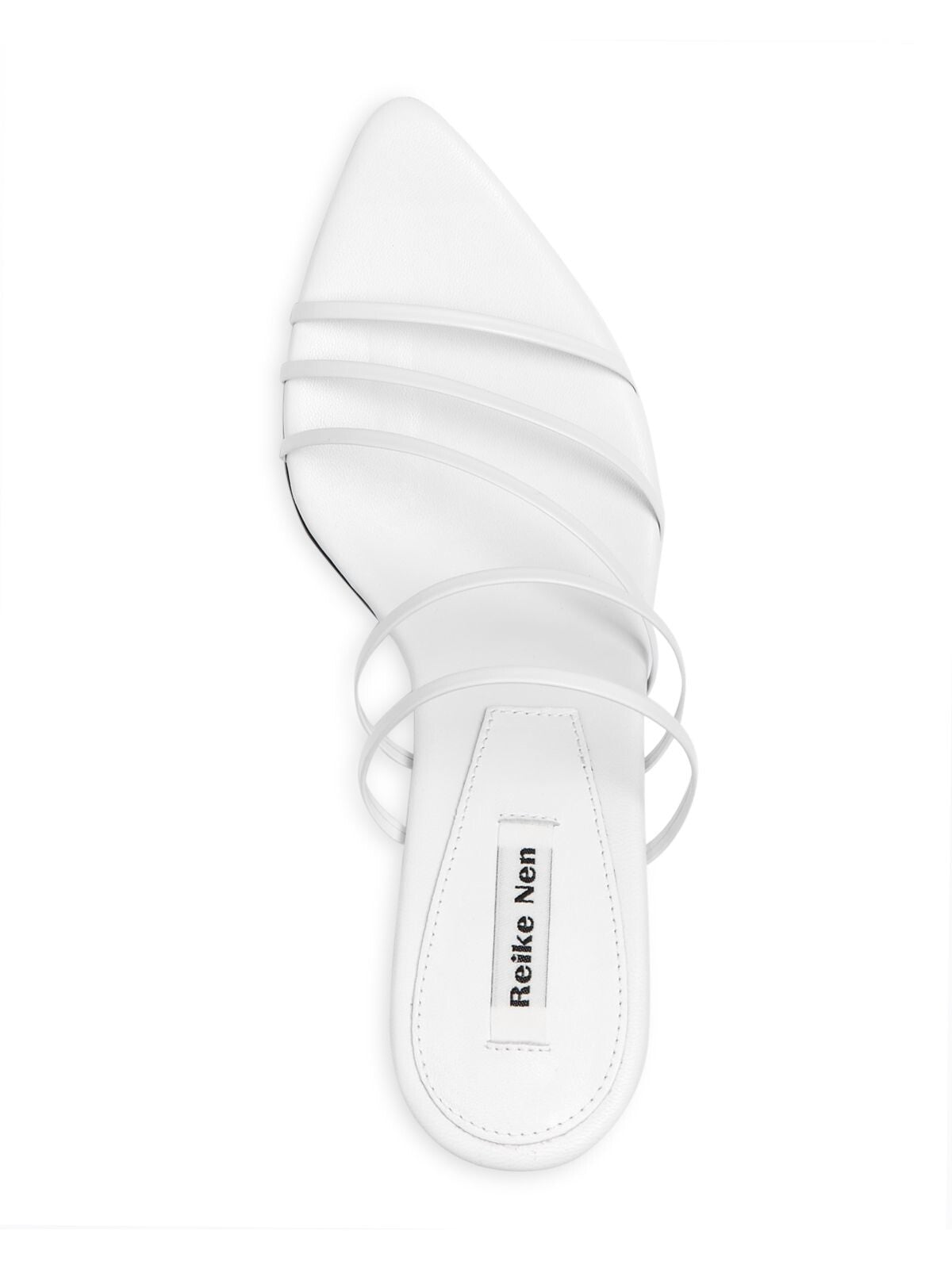 REIKE NEN Womens White Strappy Padded Pointed Toe Sculpted Heel Slip On Leather Dress Slide Sandals Shoes