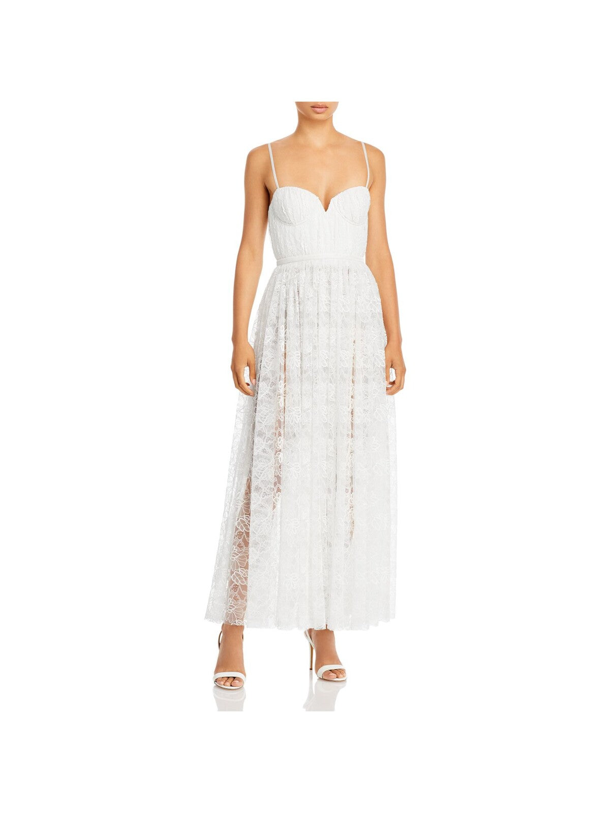 SAU LEE Womens White Lace Zippered Pleated Spaghetti Strap Sweetheart Neckline Midi Evening Fit + Flare Dress 10