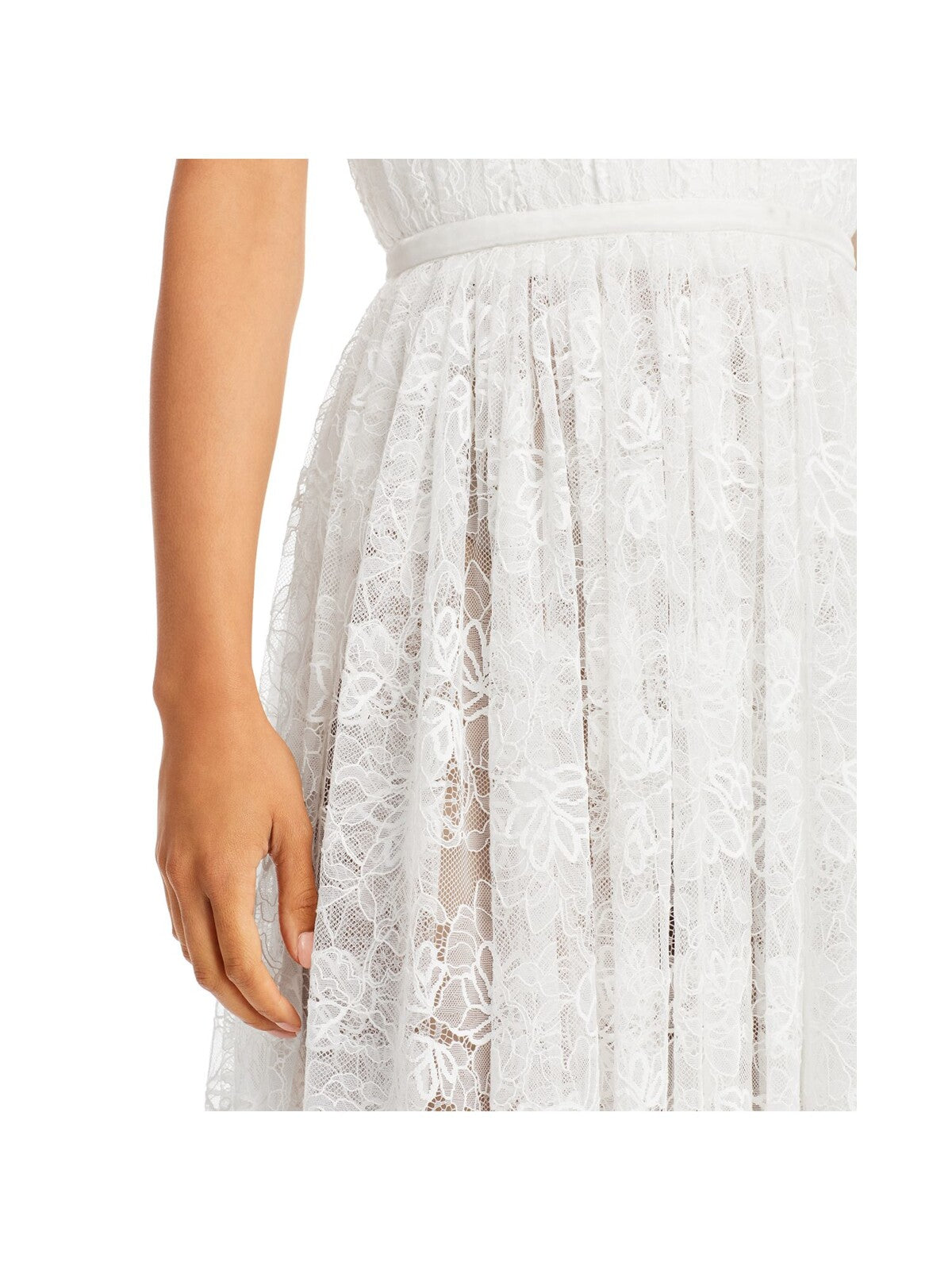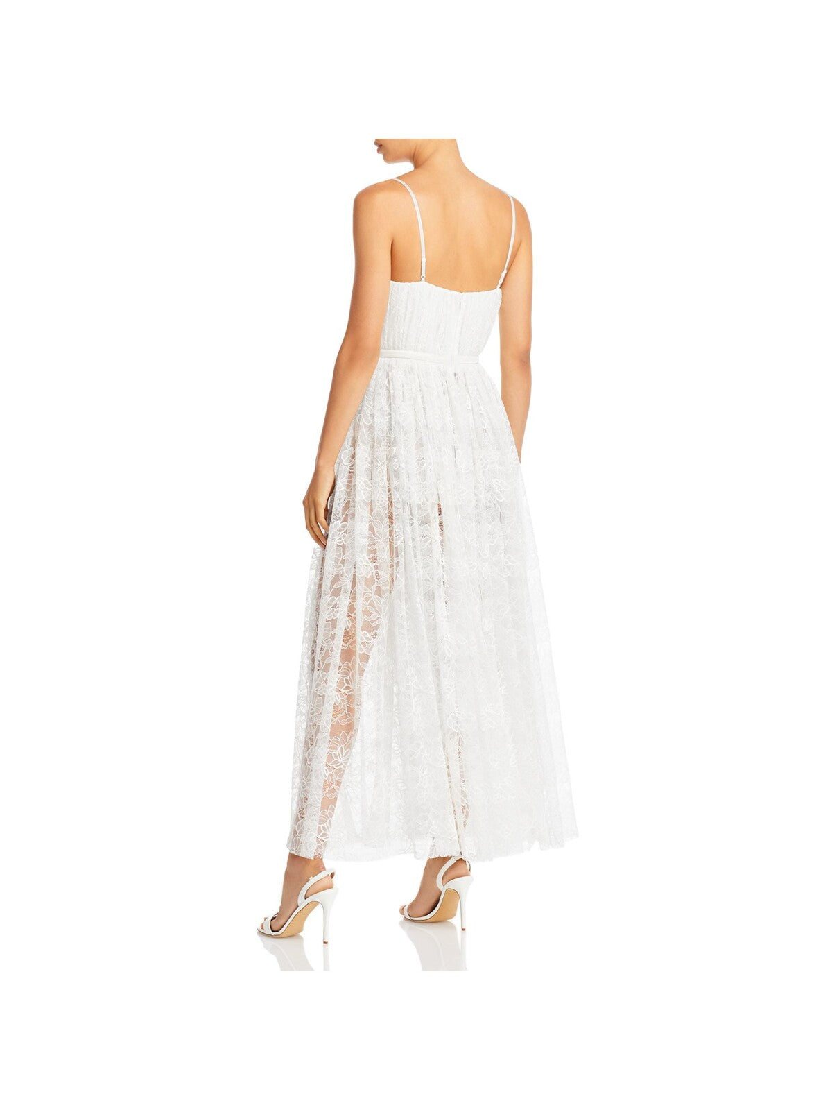 SAU LEE Womens White Lace Zippered Pleated Spaghetti Strap Sweetheart Neckline Midi Evening Fit + Flare Dress 2