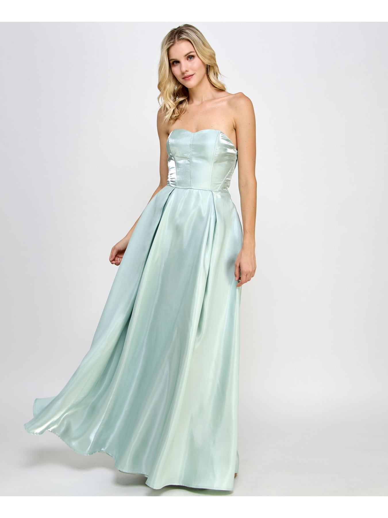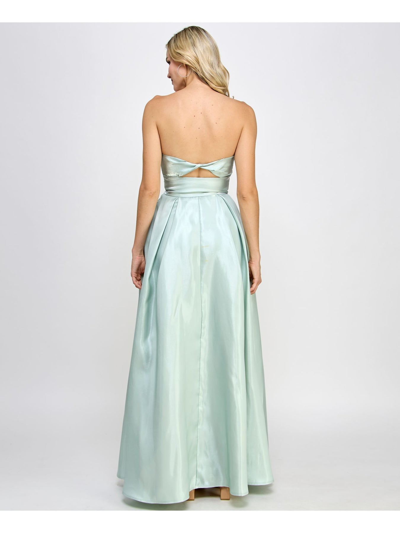 Womens Green Zippered Lined Iridescent Boning Bodice Cut Out Sleeveless Sweetheart Neckline Full-Length Formal Gown Dress
