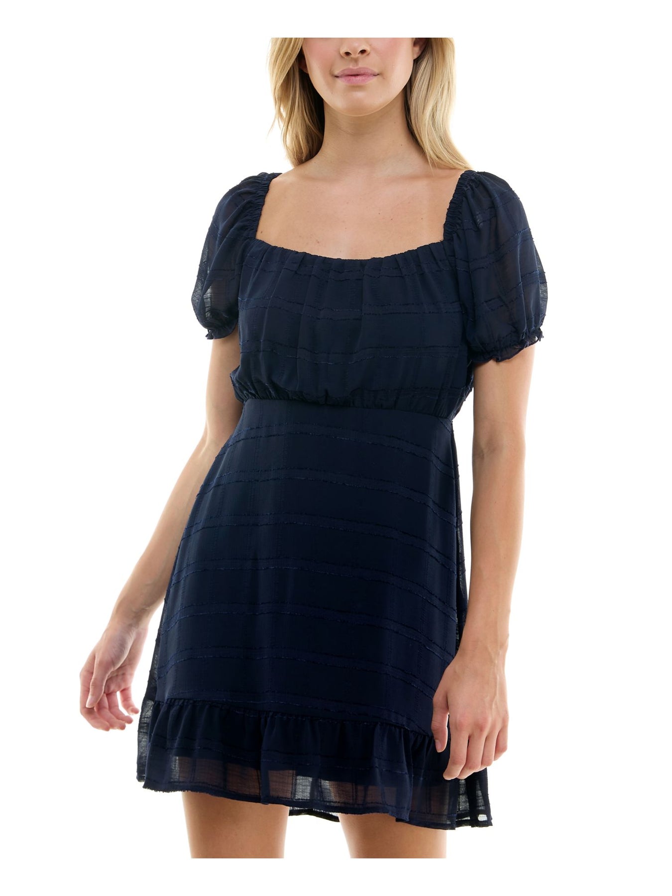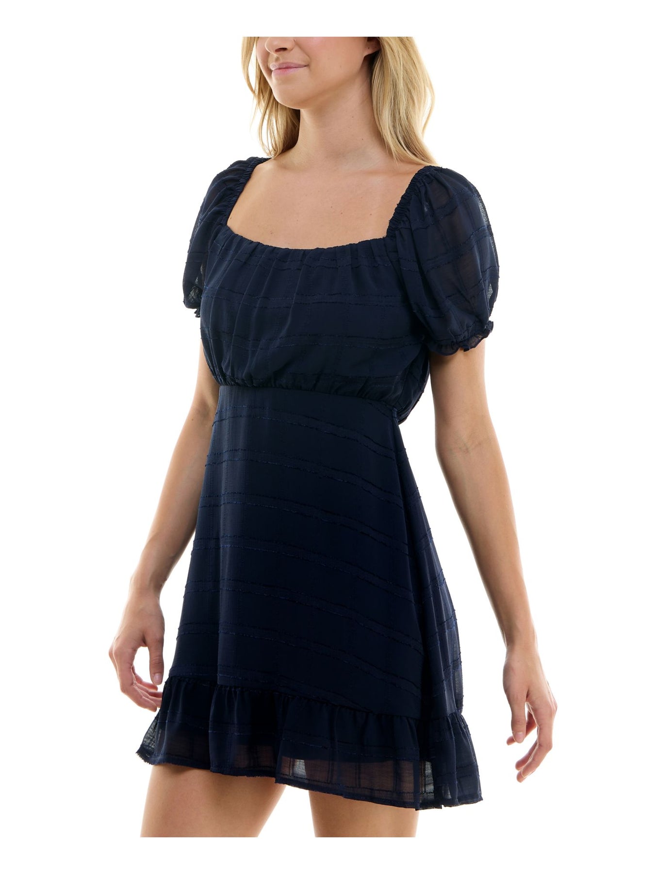 SPEECHLESS Womens Fit + Flare Short Dress Navy Lined Pouf Sleeve Square Neck Tie Back Flounce Hem Juniors XL