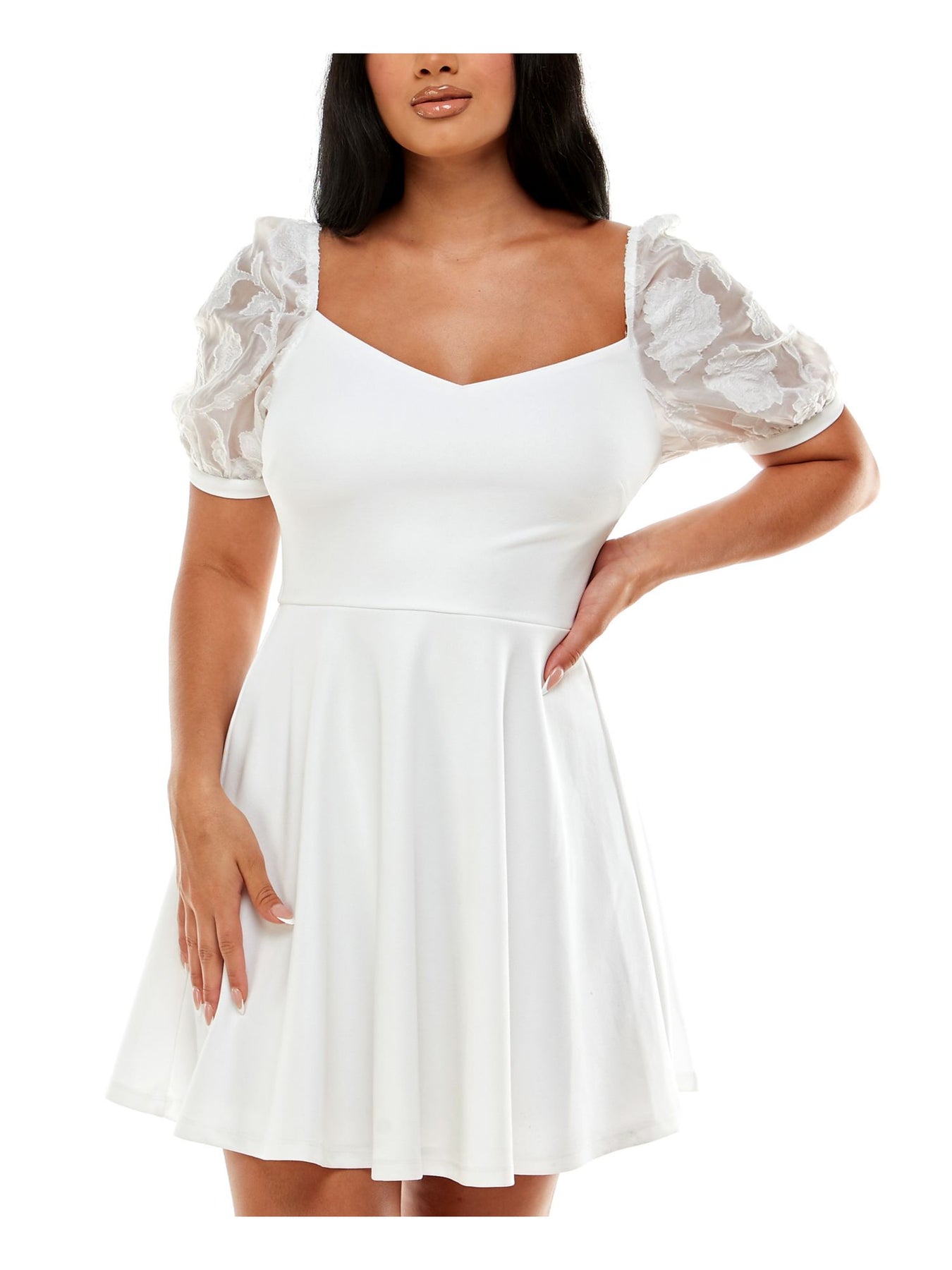 SPEECHLESS Womens White Zippered Lace Scuba Crepe Pouf Sleeve Sweetheart Neckline Mini Evening Fit + Flare Dress 11
