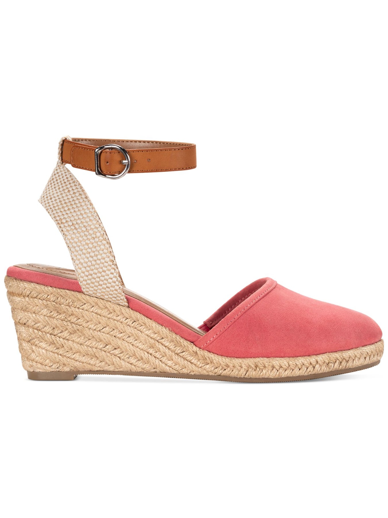 Womens Pink Mixed Media Ankle Strap Padded Mailena Round Toe Wedge Buckle Espadrille Shoes M