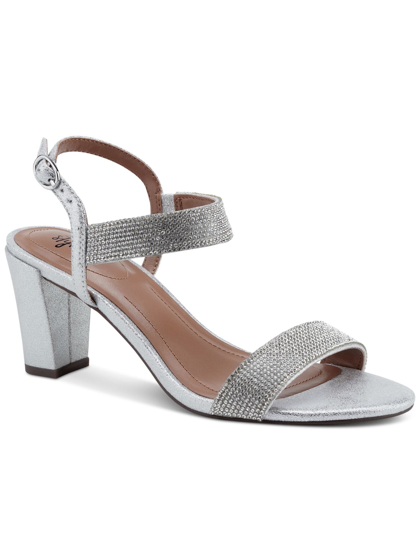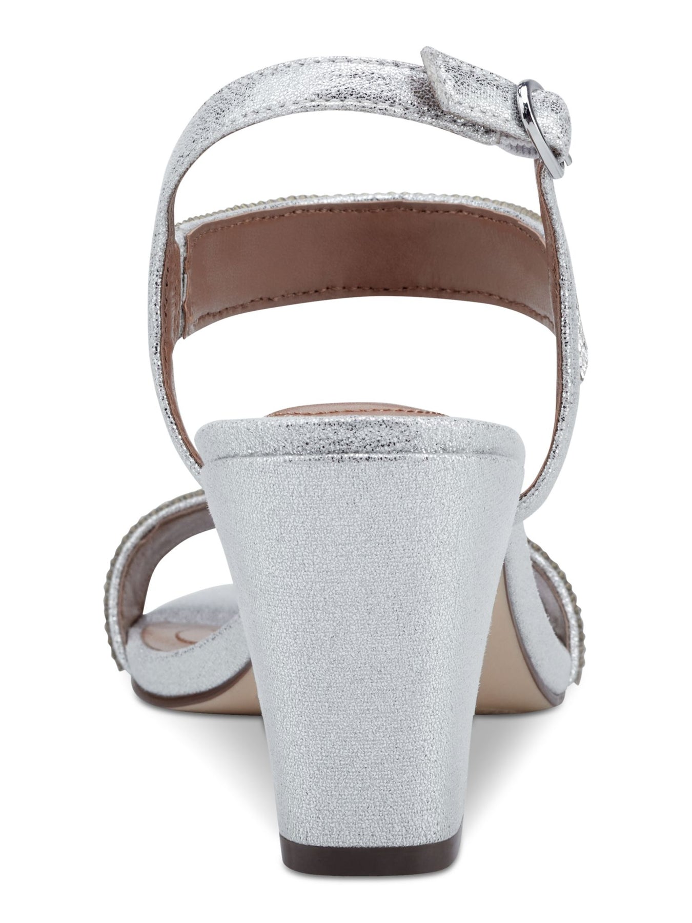 Womens Silver Mixed Media Padded Goring Bonitaa Round Toe Cone Heel Buckle Dress Slingback Sandal M