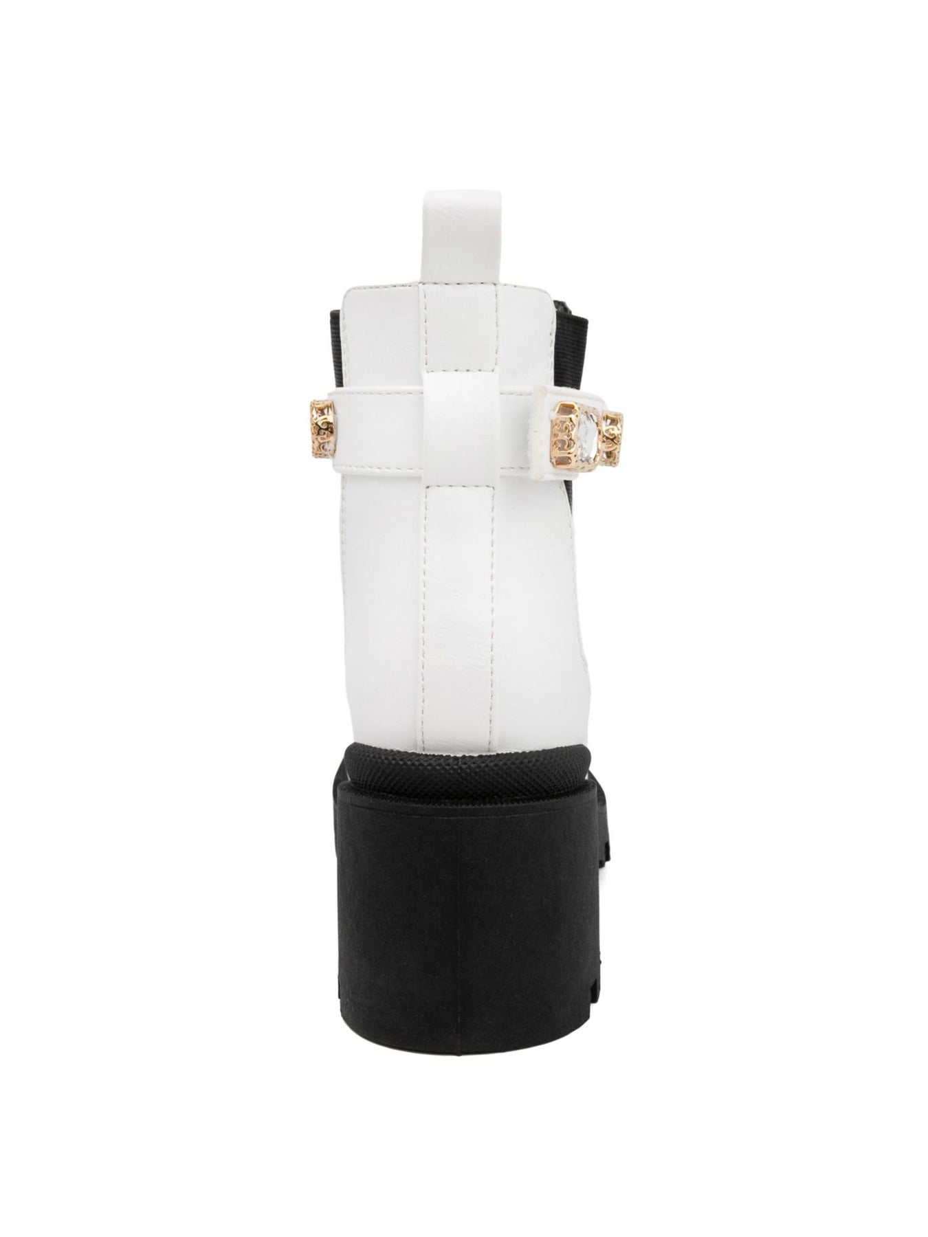 Womens White Color Block 1" Platform Cushioned Back Pull Tab Adjustable Strap Goring Favorite Round Toe Block Heel Booties M