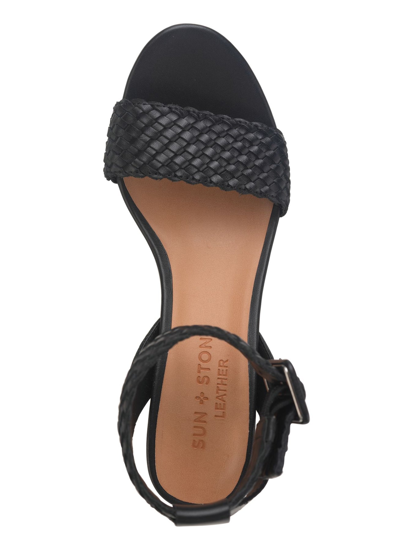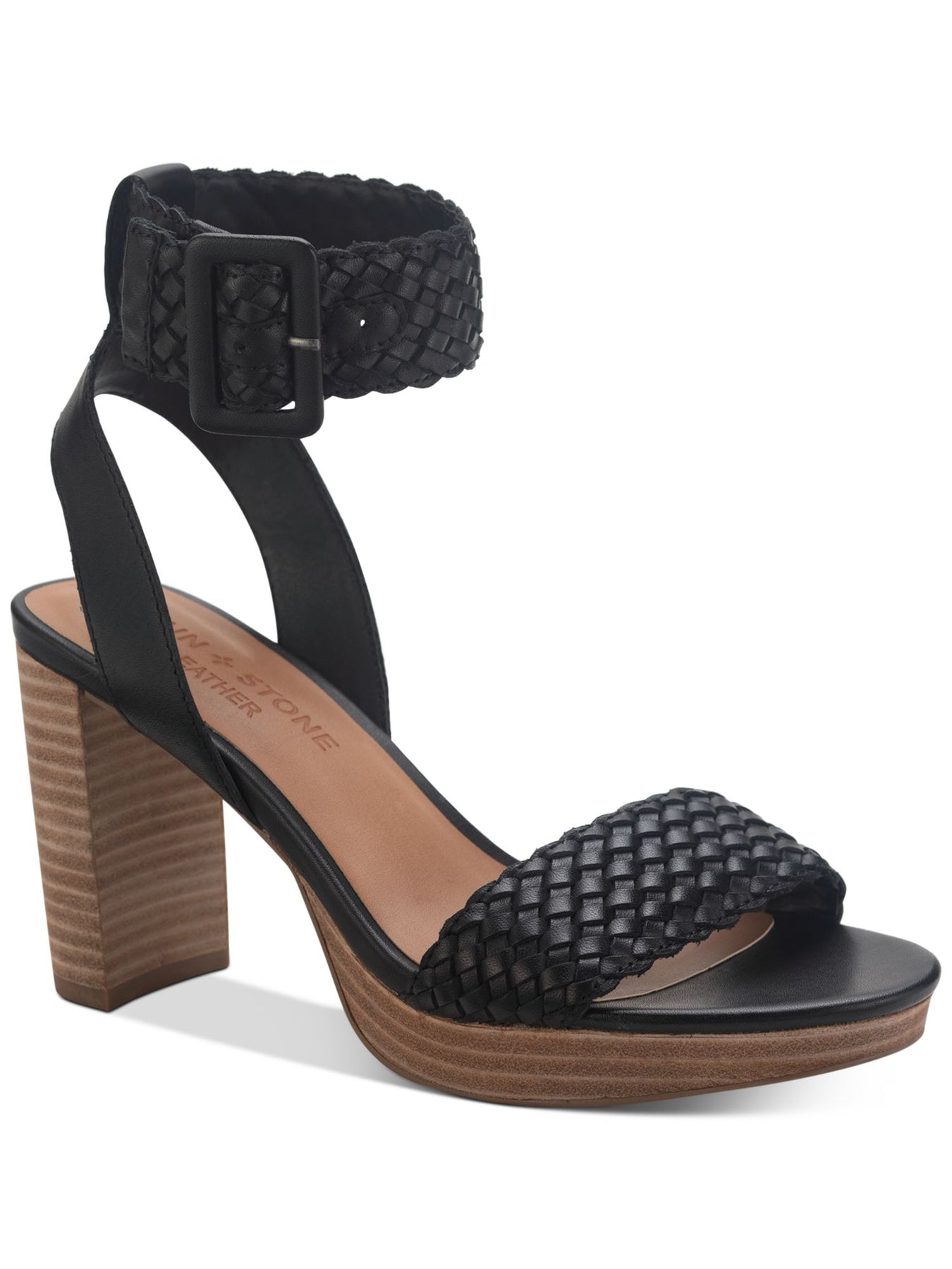 Womens Black Woven Ankle Strap 0.5" Platform Slip Resistant Cushioned Stefani Round Toe Block Heel Buckle Leather Dress Sandals Shoes M