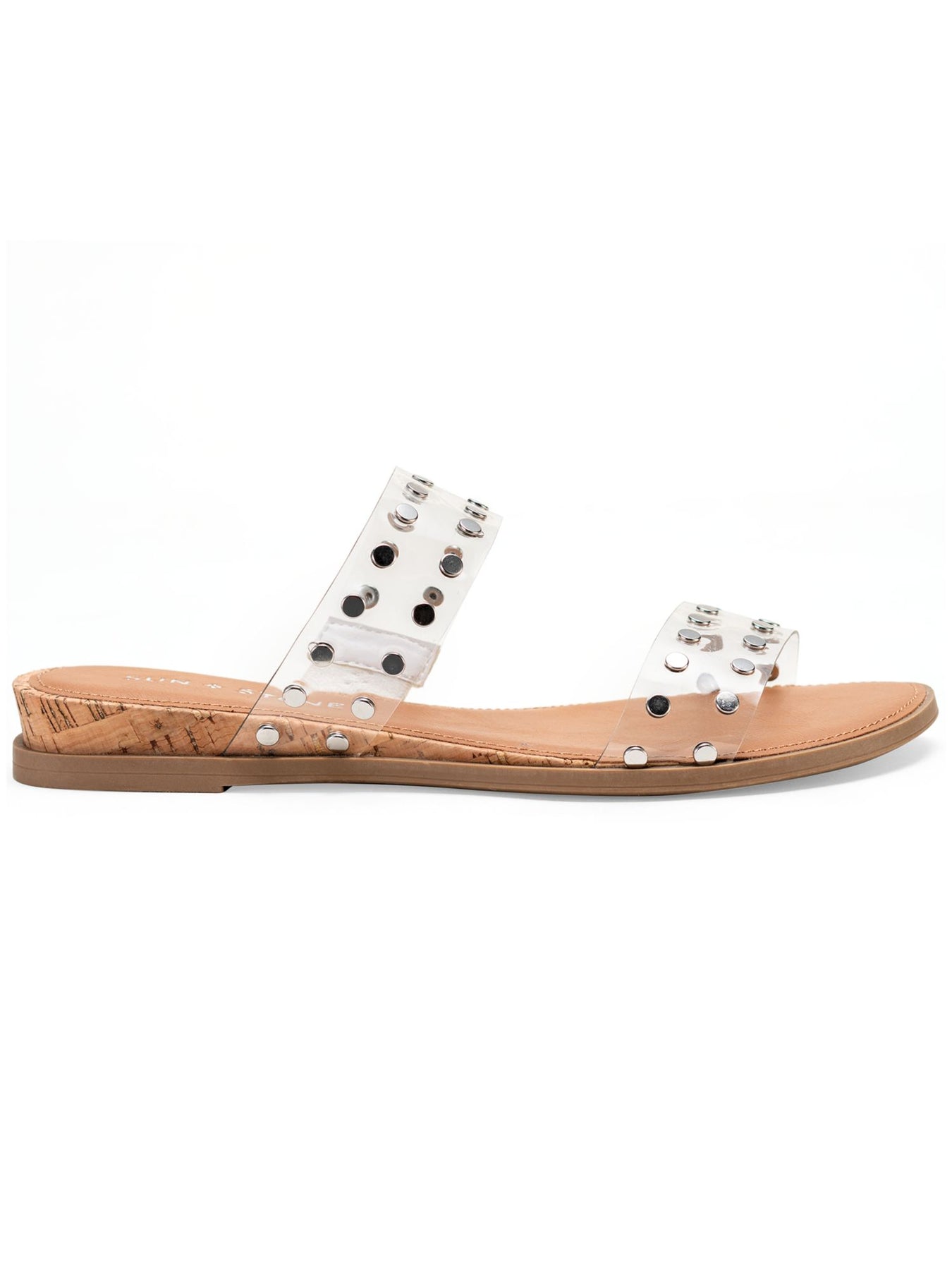 Womens Clear Cushioned Comfort Studded Slip Resistant Easten Round Toe Wedge Slip On Slide Sandals Shoes M