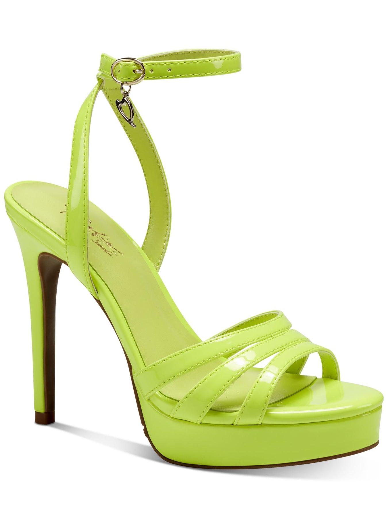 Womens Green 1" Platform Patent Strappy Padded Chancy Almond Toe Stiletto Buckle Dress Heeled M
