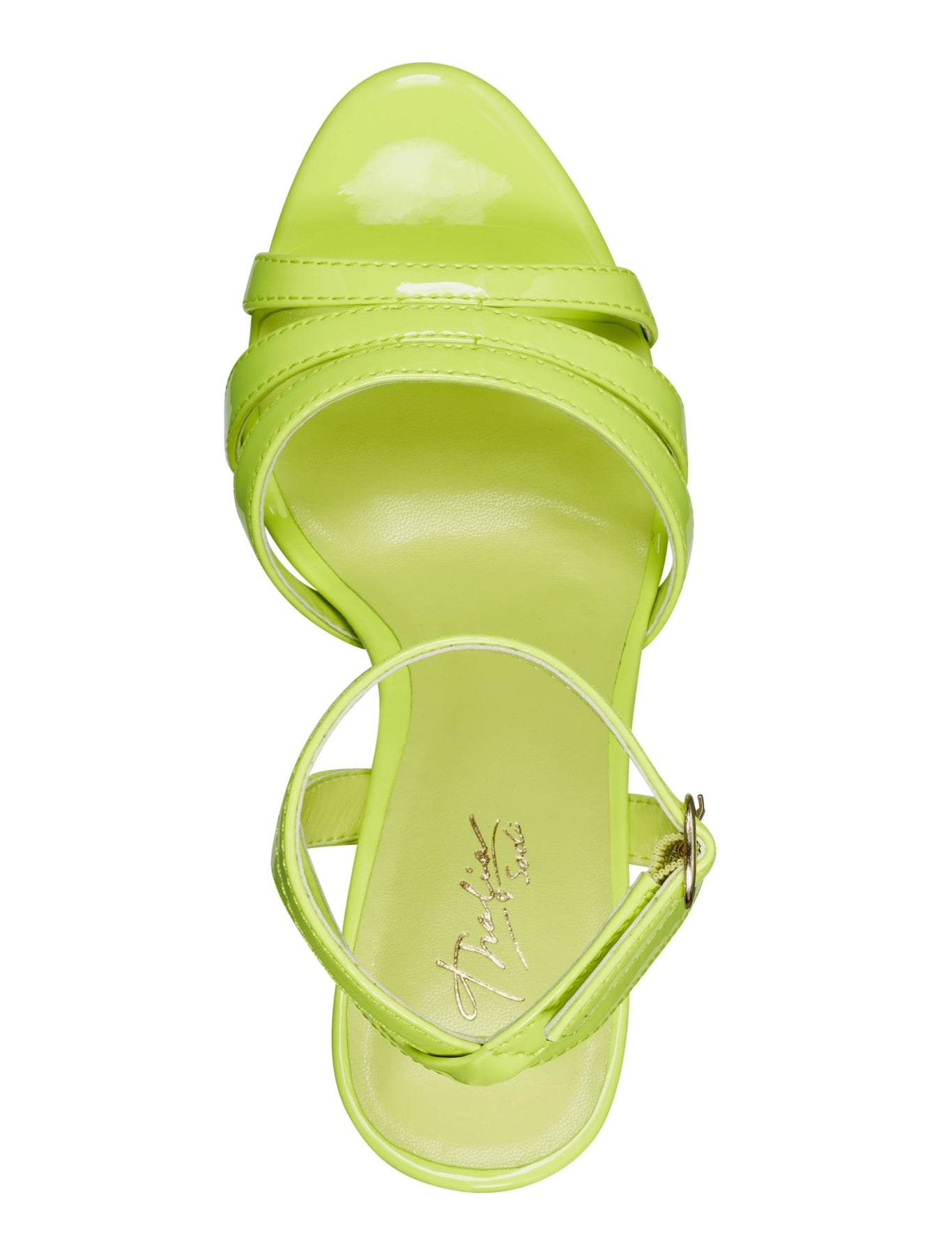THALIA SODI Womens Green 1" Platform Patent Strappy Padded Chancy Almond Toe Stiletto Buckle Dress Heeled M