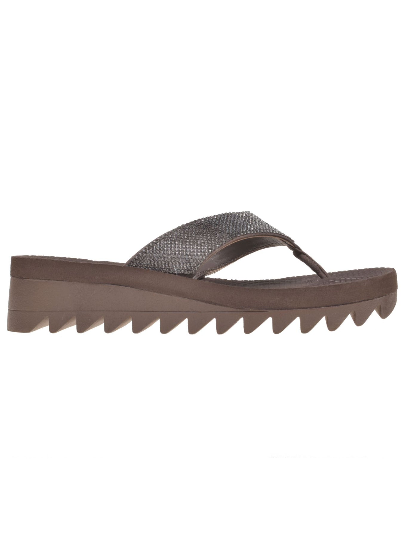 Womens Brown Saw Tooth Sole Rhinestone Kalabasas Round Toe Wedge Slip On Flip Flop Sandal M